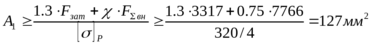 т = 320 – предел текучести материала болта, для болтов класса прочности 4.8