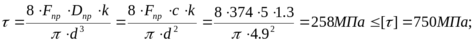 5) Напряжение кручения при использовании проволоки круглого сечения