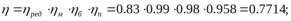 Для механизмов с зубчатым редуктором (с учетом того, что фактические потери могут быть меньше расчетных)