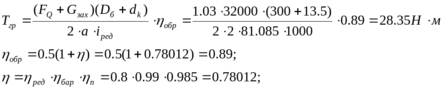 где - прямой КПД механизма между тормозным шкивом (диском) и грузозахватным устройством.