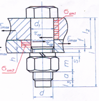 Несдвигаемость деталей соединения относительно друг друга обеспечивается за счёт сопротивления: а) срезу стержня болта, б) смятию боковой поверхности болта и соединяемых деталей.