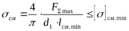 Условие прочности соединения на смятие. В качестве площади поверхности смятия берут её проекцию на плоскость: