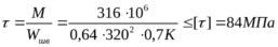 - допускаемое напряжение на срез материала болта. Показатели для стали.