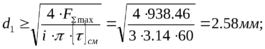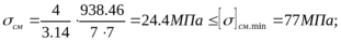- допускаемое напряжение на смятие для менее прочного материала (заготовки втулок и обойм муфты сделаны из стали марки 40)