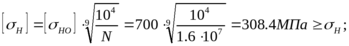 2). Контактное напряжение при точечном контакте и стальном колесе, МПа: