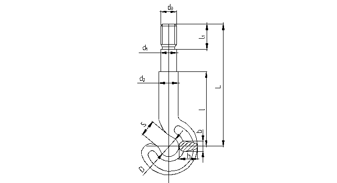 Крюк однорогий № 20. Размеры (ГОСТ 6627-74)
