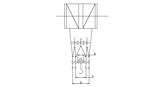 где b=300 – расстояние между внутренними блоками крюковой подвески; b2=434 – расстояние между внешними блоками крюковой подвески