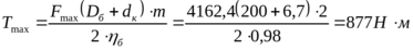 где d – диаметр вала; dmax – наибольший допустимый размер отверстия в полумуфте или втулке; Tном – номинальный момент муфты по каталогу; Tmax – наибольший момент, передаваемый муфтой.