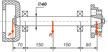 Задача 1. Выявить источники вынужденных колебаний и привести вид амплитудно-частотной характеристики вала привода в установке резки слитков, если блок шкивов снабжен шпонкой, а резцовая головка собрана на валу с некоторым эксцентриситетом. Необходимые данные см. в лекции.