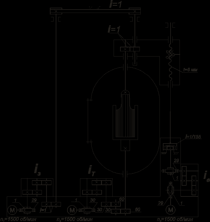 Кинематическая цепь, определяющая перемещение затравки, состоит из двух червячных передач, двухпарной гитары, волновой передачи и передачи винт-гайка. Таки образом скорость перемещения затравки определяется по формуле: