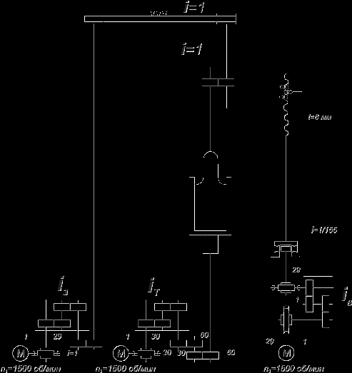 Цепь вертикального перемещения затравки. (электродвигатель, червячная передача, двухпарная гитара, червячная передача, винтовая передача).