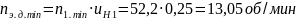 Найдем интервал вращения электродвигателя при UH1=0,25: