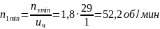 Рассчитаем передаточное отношение механизма при минимальной скорости вращения затравки и двигателя, и максимальной скорости вращения затравки и двигателя.