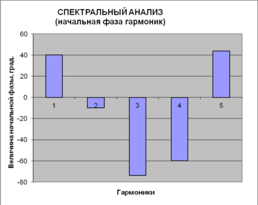 По указанным формулам с помощью табличного редактора Excel для гармоник в диапазоне от 1 до 5 получены значения амплитудных значений погрешностей и их начальных фаз. Результаты анализа представлены далее.