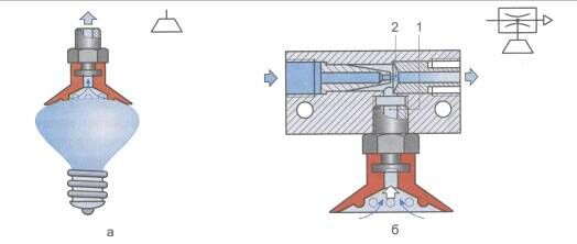 Рис.27. Захваты: а) вакуумный; б) эжекторный