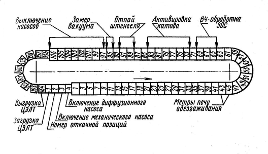 Рис.4-2. Линия вакуумной обработки цветных электронно-лучевых трубок