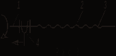 Винтовая пара. На рис.1 представлен один из вариантов суммирующего механизма на основе винтовой передачи, которая состоит из гайки 3 и винта 4. На гайку движение передаётся через вал 1. Подшипник 2 позволяет гайке осуществлять только вращательное движение. Ходовой винт может вращаться, а также перемещаться в осевом направлении при помощи вилки 5. Отличительной особенностью рассматриваемого варианта является то, что в передаче резьба выполнена с большим шагом Т. Это позволяет устранить эффект самоторможения винтовой пары.