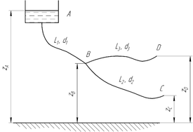 Определить: Расход жидкости в точках C и D. | Рис. 2. Схема гидравлической системы |