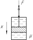 Определить: Дифференциальное уравнение движения штока демпфера. | Рис. 1. Схема гидравлического демпфера |