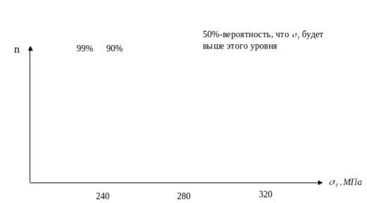 - коэффициент запаса по предельному состоянию. Значение коэффициента запаса и вероятность однозначно связаны. Коэффициент запаса дает более грубую и простую оценку для допускаемого напряжения: