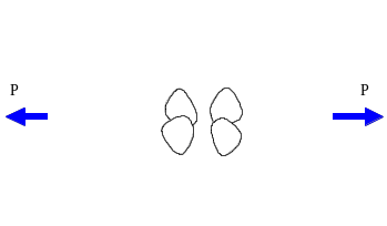 . Это связано с тем, при срезе лобового шва по наиболее слабому сечению происходит взаимное смещение соединяемых деталей. При растяжении оно приводит к тому, что листы нахлесточного соединения прижимаются друг к другу (рис. 8), и между ними возникает трение, увеличивающее прочность (только в случае плотной сборки и сварки без зазора). При сжатии между пластинами увеличивается зазор, и трение не возникает. Если нахлесточное соединение изготовлено с большим зазором, то прочность при растяжении и сжатии одинакова,