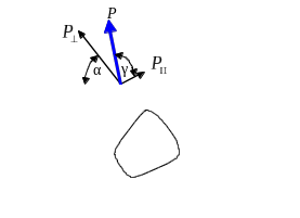 Рис. 15. Работа соединения с угловым швом при действии силы под углом к плоскости непровара и к оси шва
