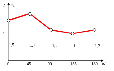 Рис. 14. Коэффициент прочности шва в зависимости от ориентации нагрузки в плоскости, перпендикулярной оси шва