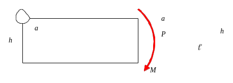 Рис. 23. Схема для подсчета площади и момента инерции сечения углового шва, прикрепляющего двутавр к стене (красным отмечены короткие участки, которые не учитываются в расчете)