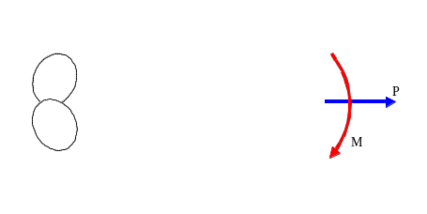 Это эквивалентно замене момента на пару сил, одна из которых суммируется с продольной силой, а другая вычитается из нее: