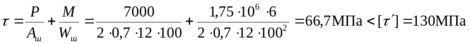 мм, т.е. расчет показывает, что в действительности заданный размер шва обеспечивал равнопрочность.