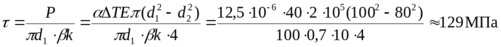 Пример 2: Определить напряжения в швах при охлаждении трубы на 40º (рис. 36). Заданы наружный