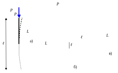 (рис. 65, б). Общее правило - ℓ равна лине полуволны, образующейся при потере устойчивости (рис. 65, в). В случае стойки Эйлера