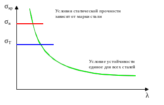 от гибкости стойки для разных сталей