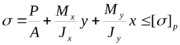 При изгибе стойки в 2 направлениях (действии двух моментов) проводятся те же три проверки, но в несколько измененном виде. Вначале необходимо найти гибкость и относительный эксцентриситет по двум осям: