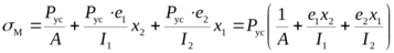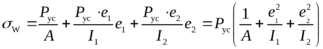 При приложении ко всему сечению Pус, в точках сечения возникнут напряжения от сжатия и изгиба. В произвольной точке сечения M с координатами x1 и x2 по осям 1 и 2 они будут равны