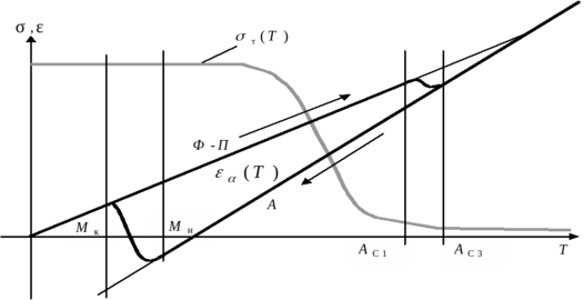 механических свойств материала, зависящих от температуры; температурных деформаций и деформаций от структурных превращений;