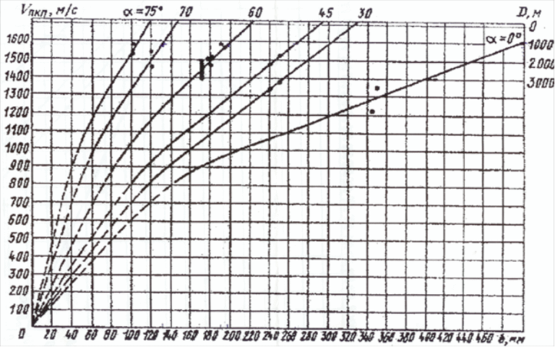 Толщина броневой детали в зависимости от αр и дальности произведения выстрела (1200м) будем определять из графиков бронестойкости (Рис 2).