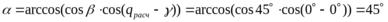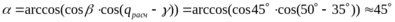 Угол подворота γ=50˚;
