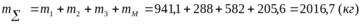 Массу прочих элементов компоновки машины принимаем 288 кг.