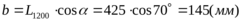 D – дальность произведения выстрела D = 1200 м