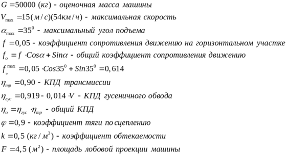 Рассчитаем необходимую мощность для гусеничной машины массой 50 тонн.