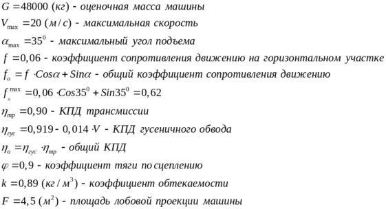 Рассчитаем необходимую мощность для гусеничной машины массой 48 тонн.