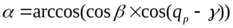 Угол встречи вычисляется по геометрической зависимости и равен: