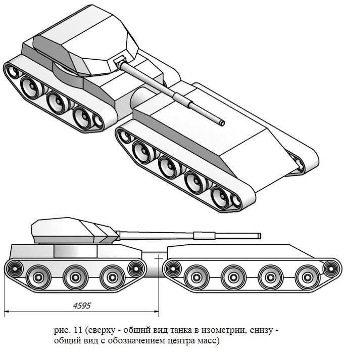 2. Обеспечена защита в пределах безопасного угла маневрирования от бронебойных подкалиберных снарядов на дистанции 1200 м. Для уменьшения массы использовано дифференцированное бронирование. Центры масс обоих звеньев в пределах их опорной поверхности. Центр масс всей машины попадает на место расположения поворотно-сцепного устройства.