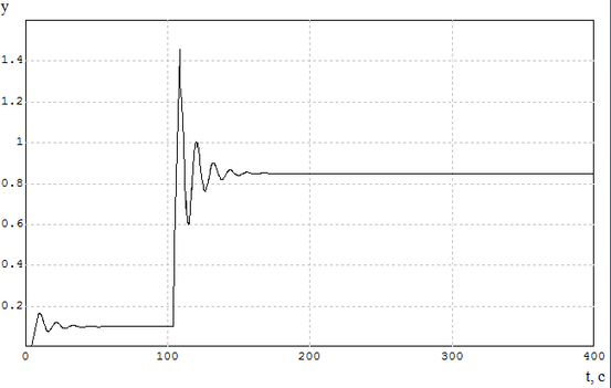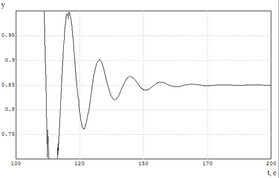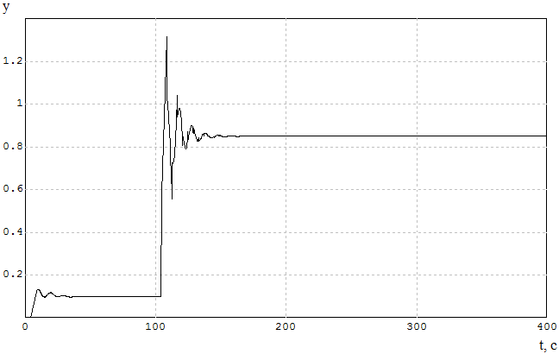 Нужно настроить так, чтобы за минимальное время процесс входил в трубку допуска 0,84..0,86, никогда не выходя за за ее пределы