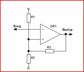 неинвертирующий поступает сигнал положительной обратной связи – опорное