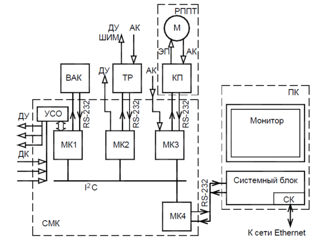 МК4 – однокристальный МК серии MCS-51, который выполняет связь с промышленным компьютером, а также координирует работу основных процессов.