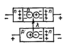 2. Транзисторная оптопара выполняется с фотоприемным элементом на основе фототранзистора. В оптопарах используются фототранзисторы со структурой n-p-n на основе кремния. Излучателями служат диоды на тройном соединении. Излучательный диод расположен так, что большая часть света направляется на базовую область фототранзистора. Так же как и в других оптопарах, излучатель и приемник изолированы друг от друга оптически прозрачной средой.