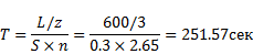 Время обработки c учетом кол-ва резцов: