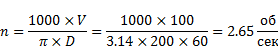 Частота вращения заготовки: